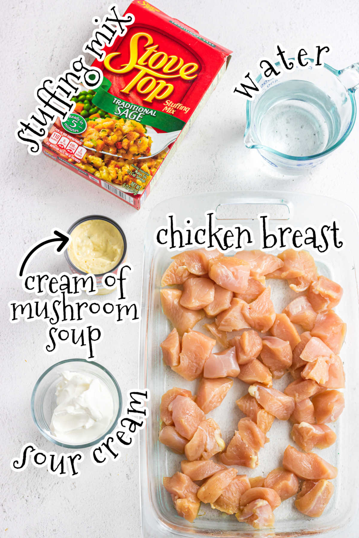 - 6 ounces chicken stuffing mix, I used Stovetop stuffing