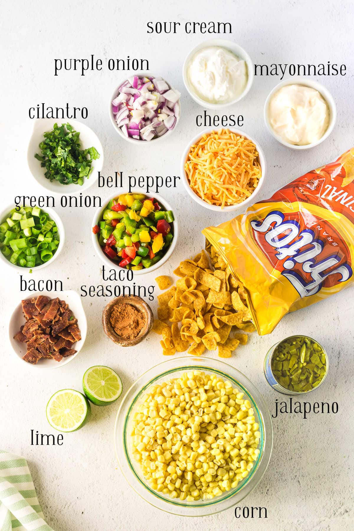 - Combine corn and the other salad ingredients except the Fritos corn chips.
