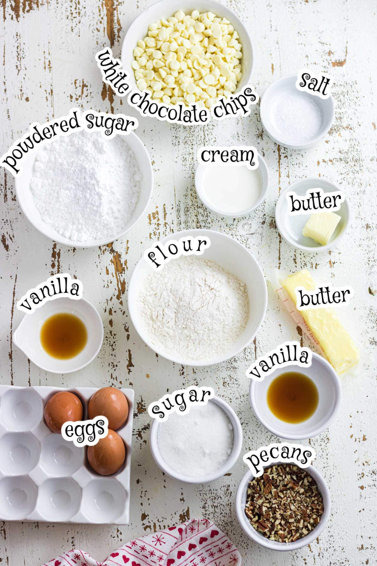 I love these pretty vanilla brownies on a cookie tray during the holidays. Arrange them along with -